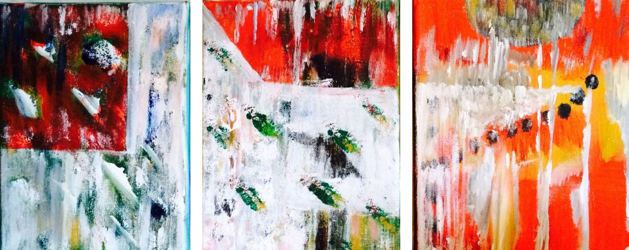 Abstract drieluik op canvas met acrylverf