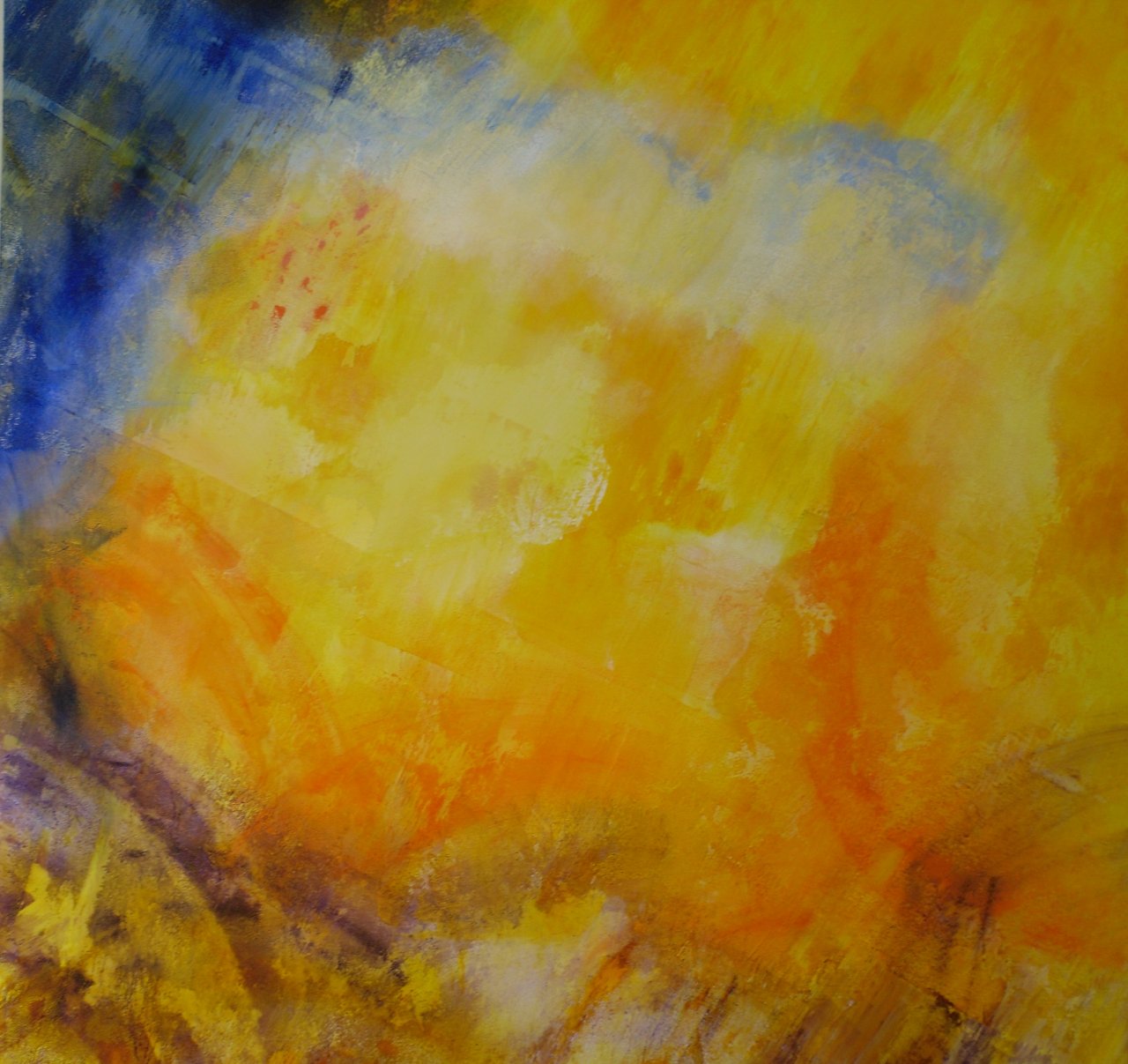 Een globale impressie van het schilderij "Higgsdeeltjes" 200x200cm.