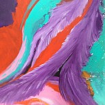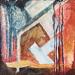 Schilderij ,in grijs-en roodtinten ,met zilver,op doek