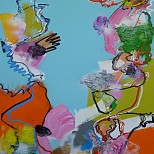 Acryl / mixed op los doek - abstract expressief - kleurrijk