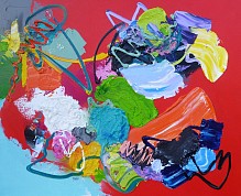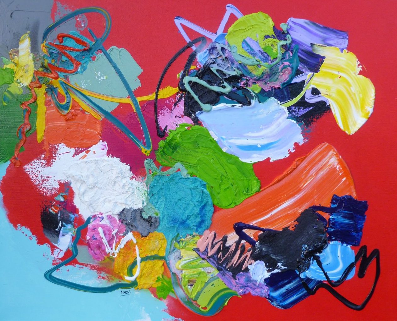 Acryl / mixed op linnen - abstract expressief werk - inclusief baklijst - kleurrijk