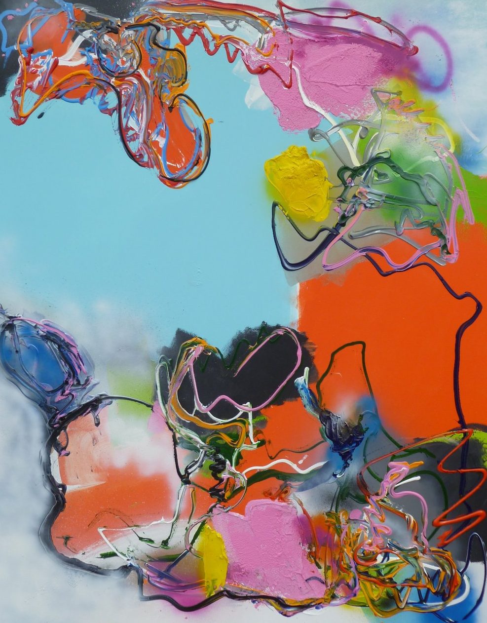 Acryl / mixed op linnen - abstract expressief werk - inclusief baklijst - kleurrijk