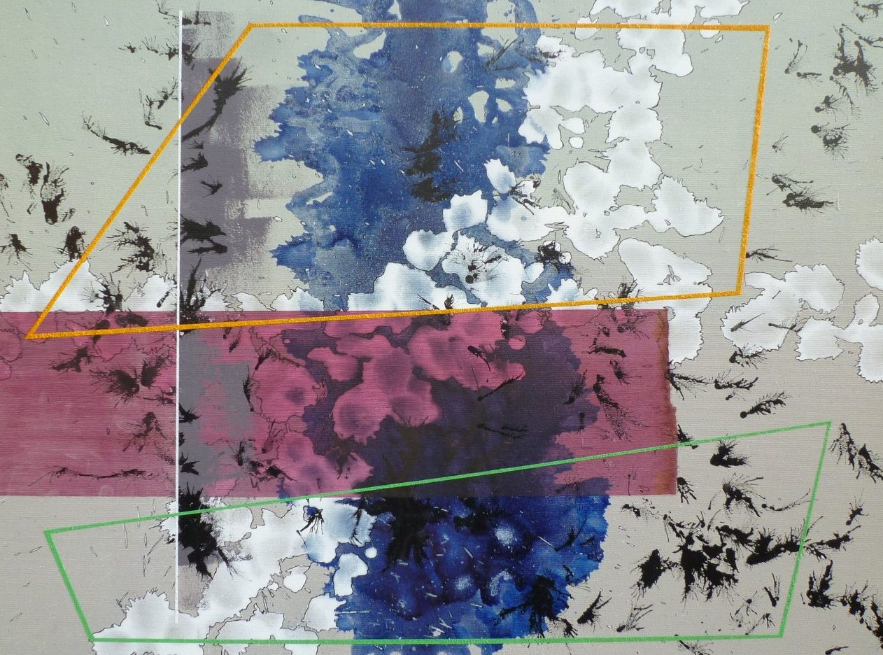 Abstract schilderij uitgevoerd in Olieverf, Lakverf en Inkt op Linnen