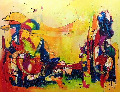 Een globale impressie van het schilderij "Fight ..or Love" 180x140cm.