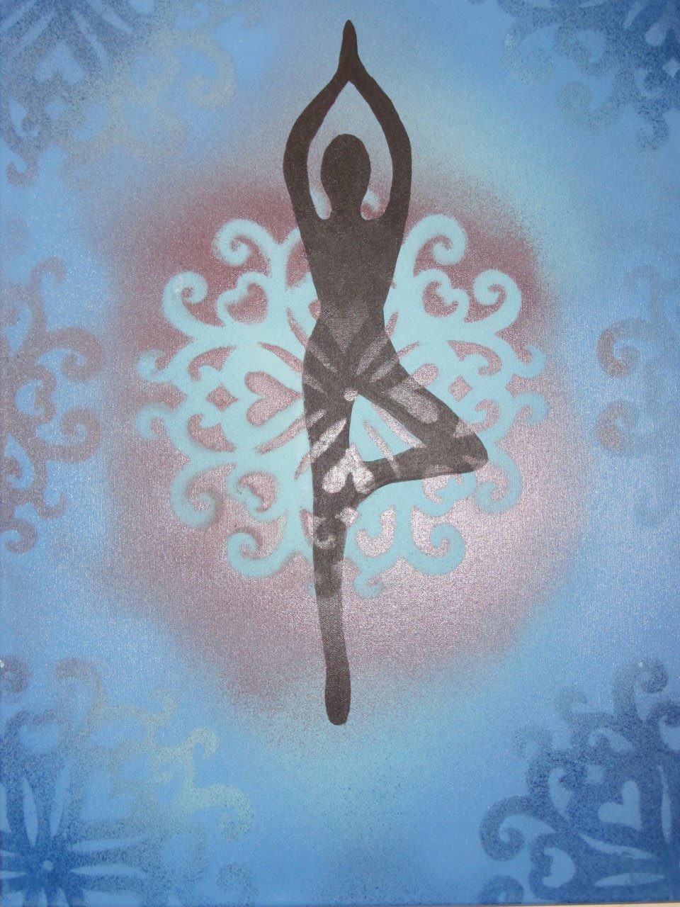 Yoga art is een acrylschilderij waarbij een yogahouding centraal staat.
