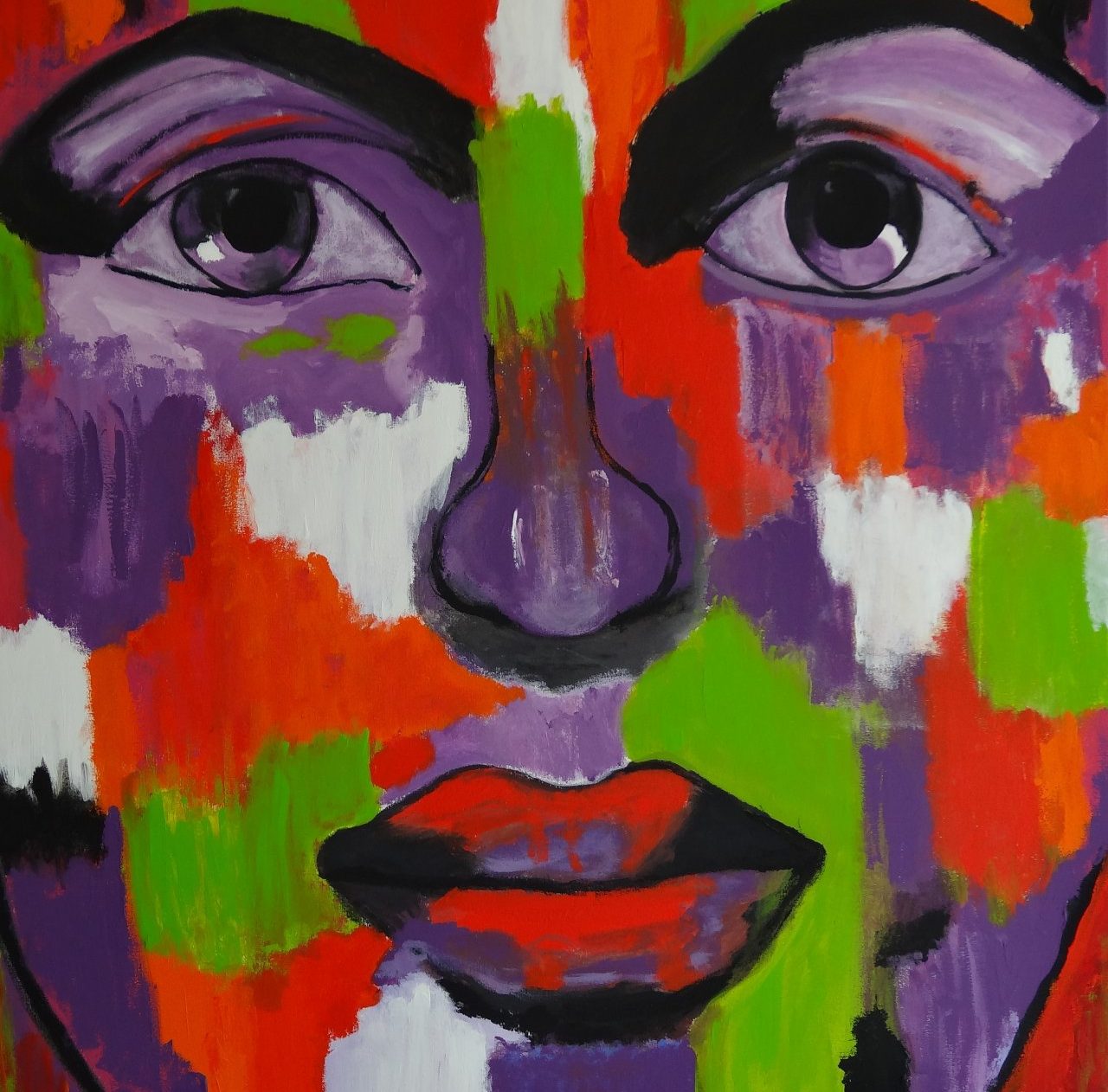Een globale impressie van het schilderij "Face" 60x60cm.