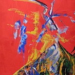 Een globale impressie van het schilderij "De dans" 100x100cm.