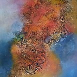 Een globale impressie van het schilderij "FlowerPower" 80x80cm.