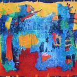 Een globale impressie van het schilderij "The Movement" 180x100cm.