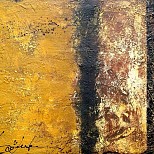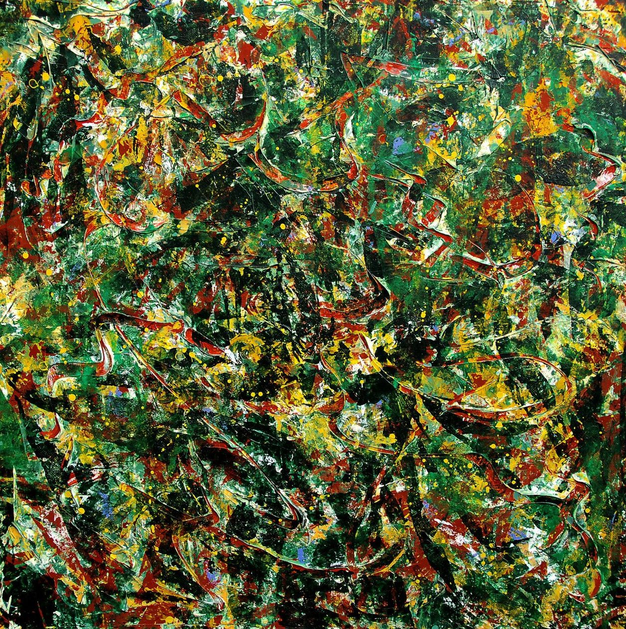 Een globale impressie van het schilderij "Festa del Carnevale" 100x100cm.