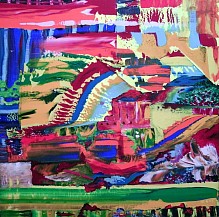 Een globale impressie van het schilderij "Tooi" 100x100cm.