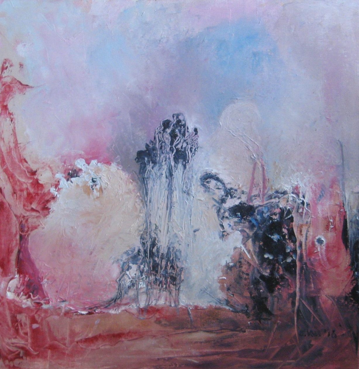 Een globale impressie van het schilderij "Zonder titel" 50x50cm.