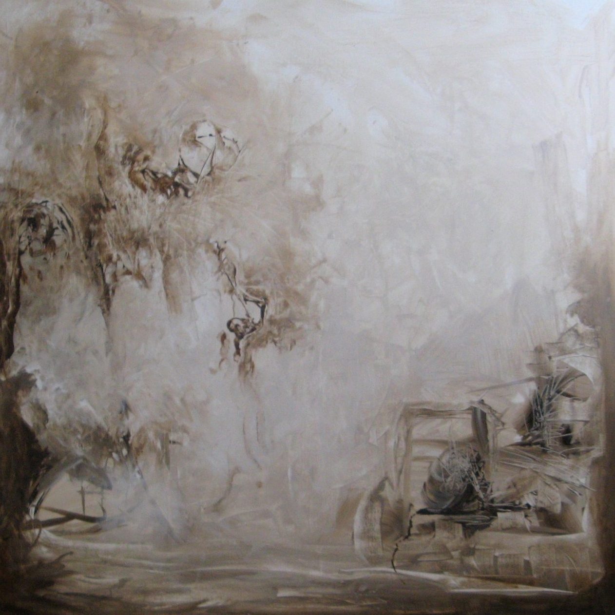 Een globale impressie van het schilderij "Past times" 80x80cm.
