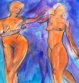 N een serie van de drie gratien ( de drie zusters) heb ik dit schilderij ,at kleiner 120 cm x 120 cm gemaakt en het heet de twee zusters