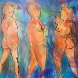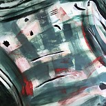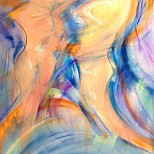 Een globale impressie van het schilderij "Beweging in Chaos 2" 100x100cm.