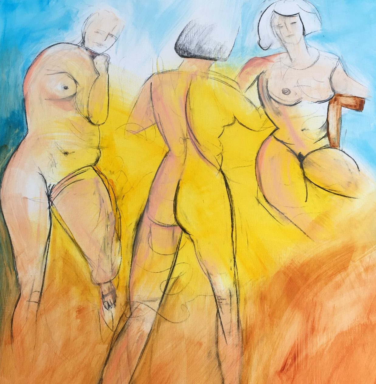 Na de drie losse dames (zusters) is dit het eerste schilderij waar ik de drie zusters samen geplaatst heb. in 2016