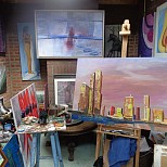 Een globale impressie van het schilderij "Zonsondergang toscane" 60x100cm.