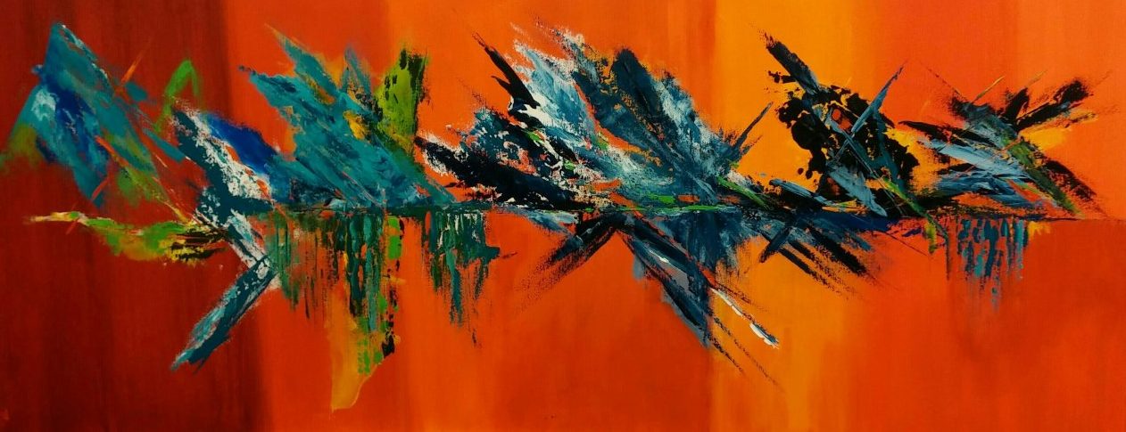 Een globale impressie van het schilderij "Geen titel" 120x50cm.