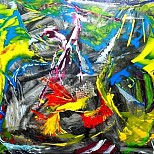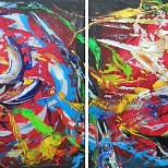 Een globale impressie van het schilderij "Blind date" 100x150cm.