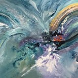 Een globale impressie van het schilderij "Skyline" 160x100cm.