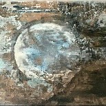 Een globale impressie van het schilderij "Flowerpower2" 120x60cm.
