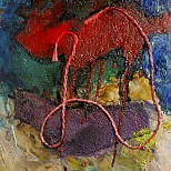 Gemengde techniek met acryl, op paneel, ingelijst in houten baklijst