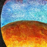 Een globale impressie van het schilderij "Genesis dag 5" 40x50cm.