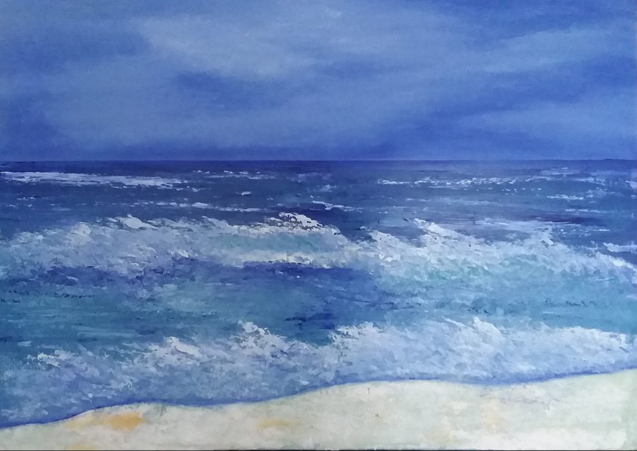 Een globale impressie van het schilderij "Zeezicht" 70x50cm.