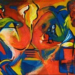 Kleurig intuïtief geschilderd doek. Na later bleek lijkt het op een fles champagne in een cooler. vandaar de naam.