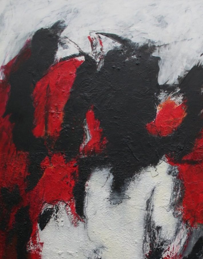 Een globale impressie van het schilderij "Woman in red" 80x100cm.