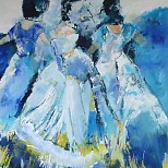 Een globale impressie van het schilderij "Zonnebloemen en lavendel" 150x50cm.