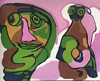Personage in de stijl van Karel Appel op 3D. Acryl op Canvas doek. Afmeting doek is 70 x 90 Cm