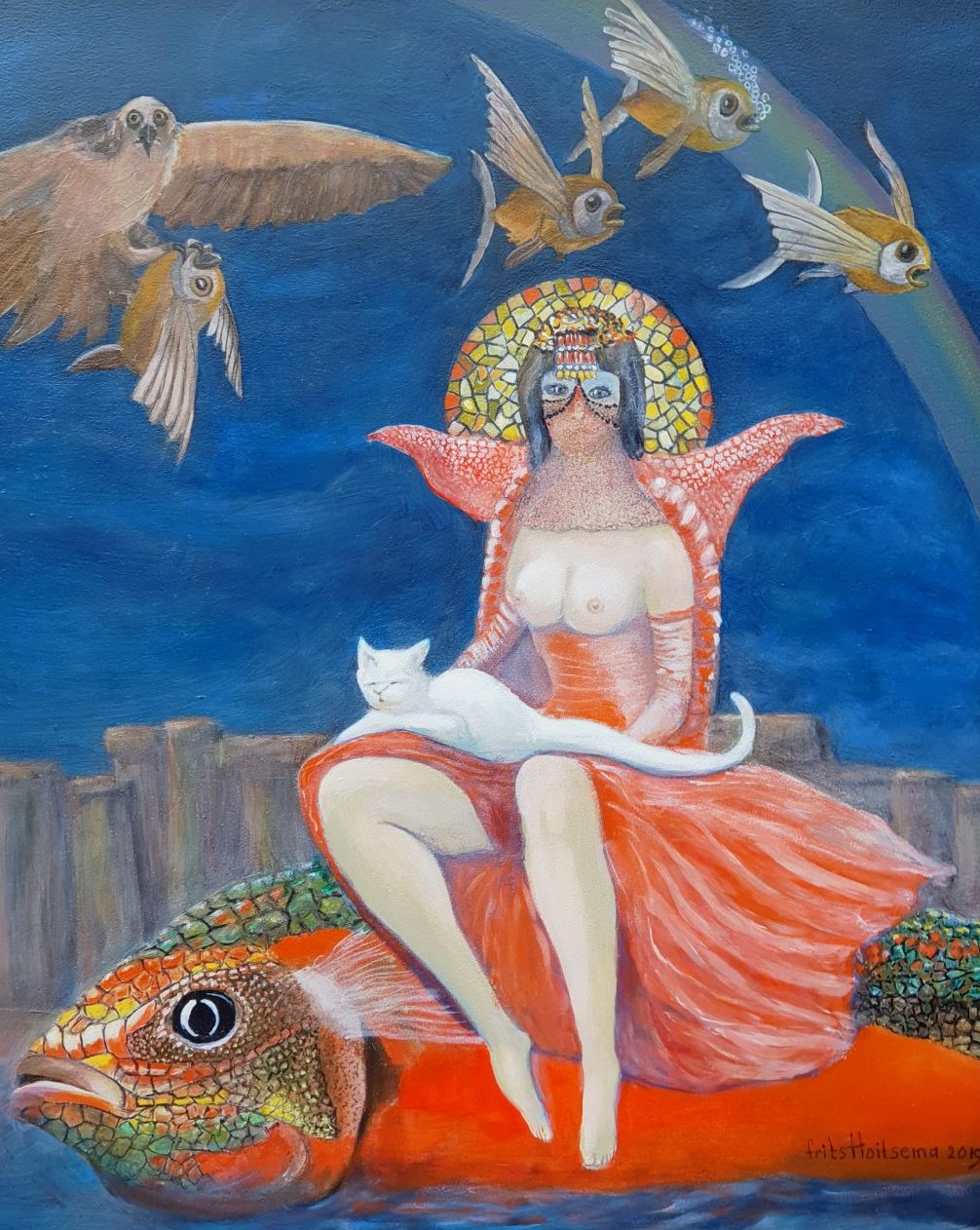Een globale impressie van het schilderij "Verstoorde evolutie" 50x60cm.