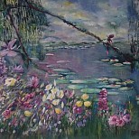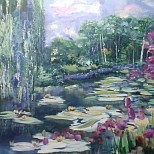 Een globale impressie van het schilderij "Tuinen van giverny" 100x100cm.