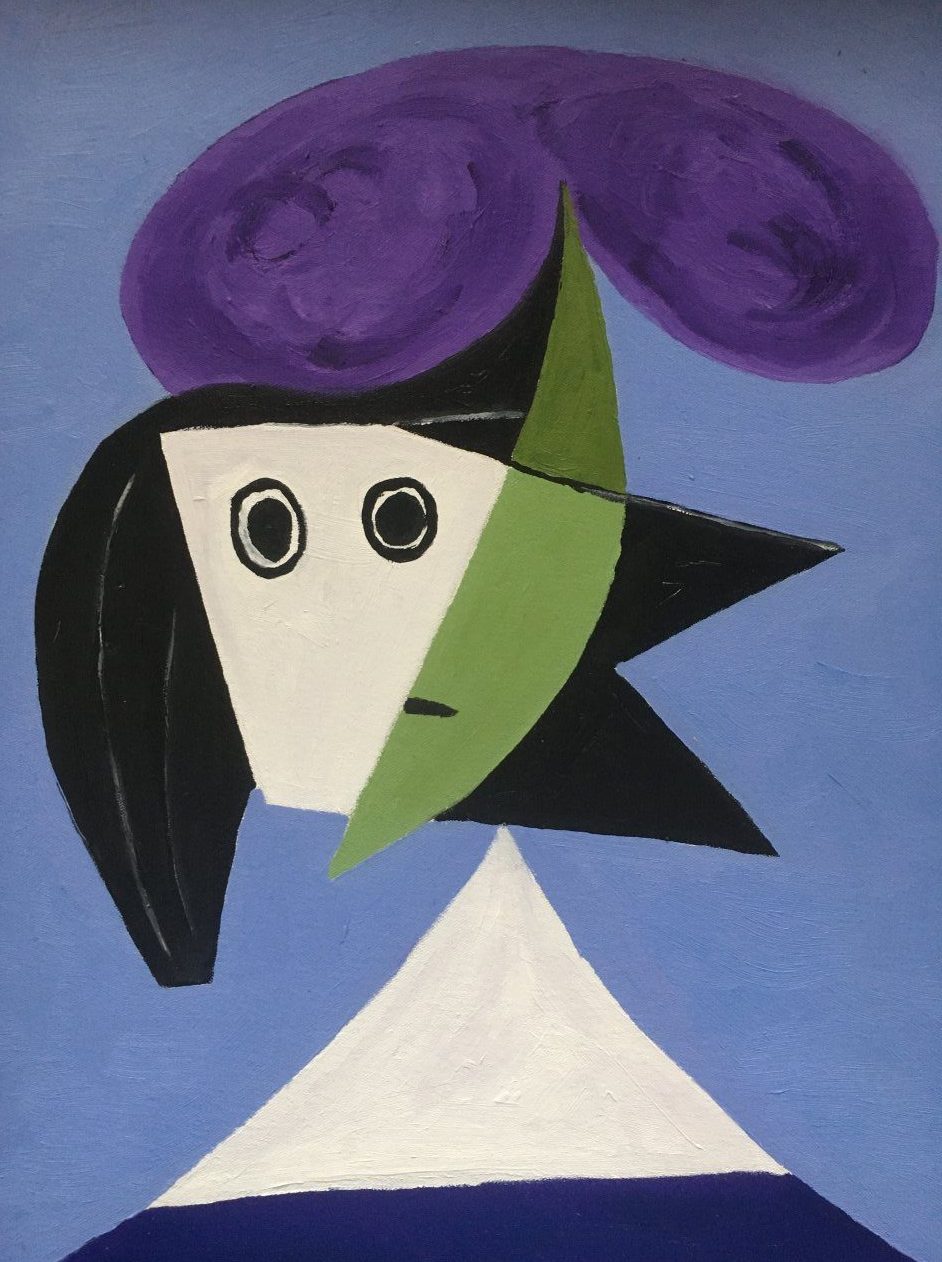 Replica "Woman with Heat" van Picasso Olieverf op paneel in lijst.