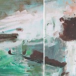 Een globale impressie van het schilderij "Separate ways" 100x40cm.