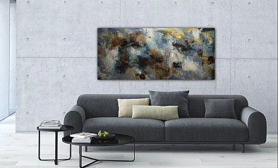 Een globale impressie van het schilderij "Blue sky 1" 180x80cm.