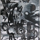 Een globale impressie van het schilderij "Zonder titel" 90x60cm.