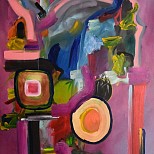 Een globale impressie van het schilderij "Happy moments" 100x100cm.