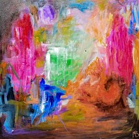 Een globale impressie van het schilderij "Change of times" 90x90cm.