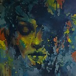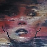 Langwerpig schilderij, gemaakt met acrylverf op doek met een dik frame. Er zit een textuur in de ondergrond. Het is abstractie gecombineerd met een vrouwelijk gelaat e bovenlijf. Het is romantisch vol warme kleuren.