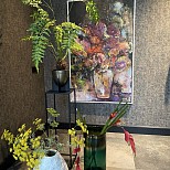 Een globale impressie van het schilderij "Modern Life" 85x105cm.