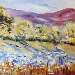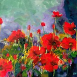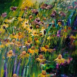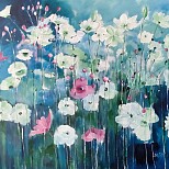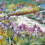 Een globale impressie van het schilderij "Waterlelies" 100x100cm.