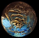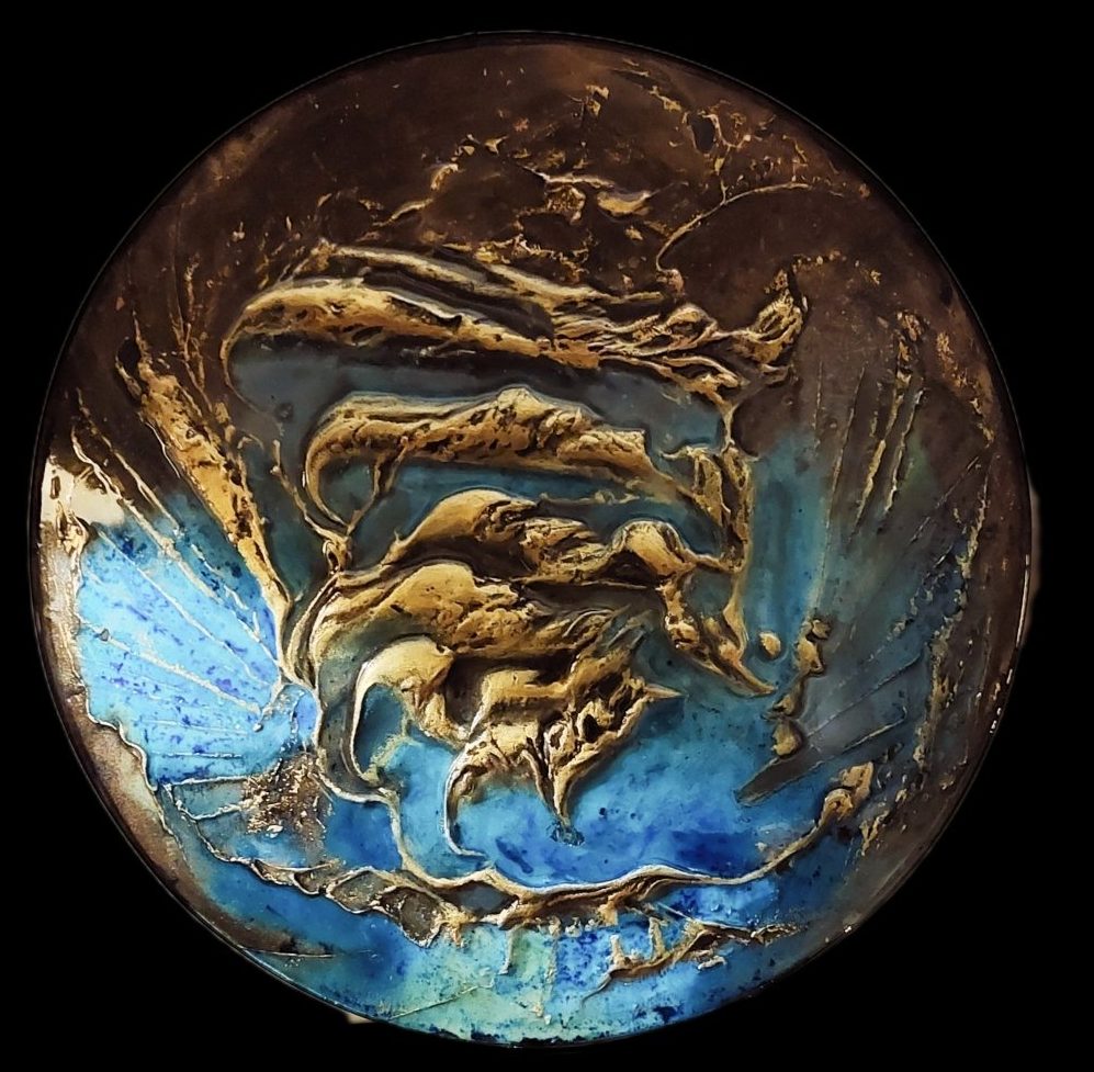 Met structuurpasta, acrylverf en epoxyhars afgewerkt.