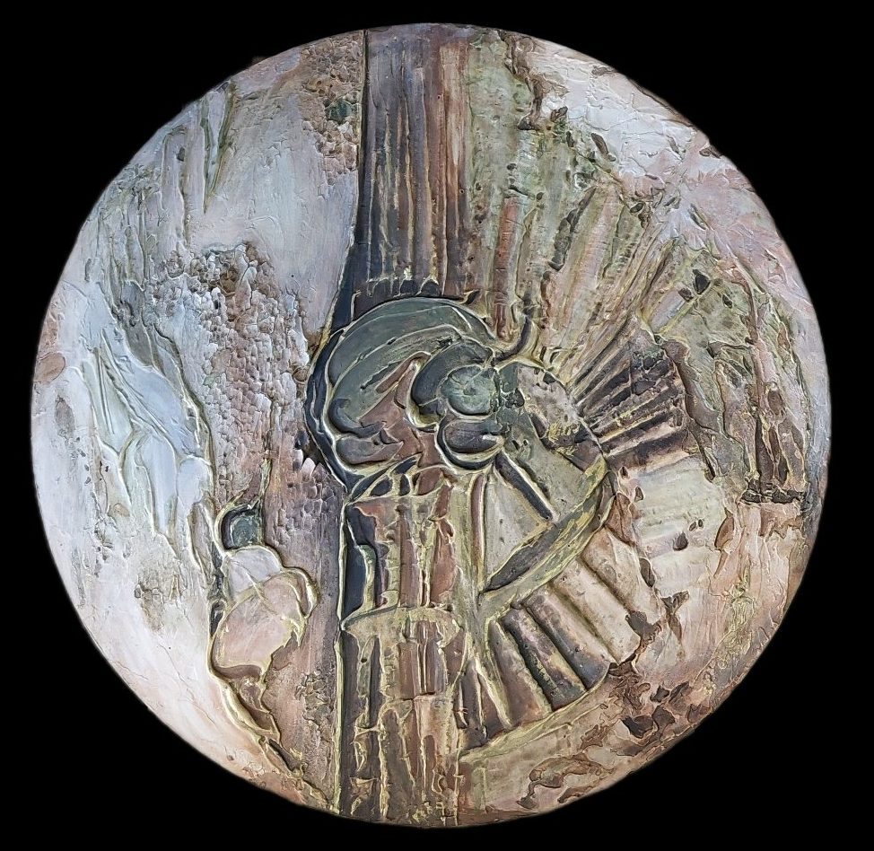 Met structuurpasta, acrylverf en goud pigmentpoeder