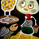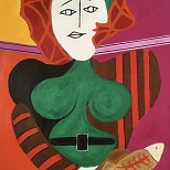 The Old Jester is een werkstuk naar Picasso uit 1963. Basis is Acryl op papier.