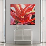 Het oranje staat voor de ziel, omringt door een muur van schijn, vrijgemaakt door het wit van loslaten en lichtblauw van lucht en vrijheid.