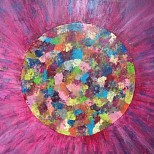 Een globale impressie van het schilderij "Abstract cilinder" 100x100cm.