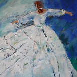 Een globale impressie van het schilderij "Witte bloemen" 100x100cm.