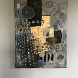 Flowers in the dark . Mixed media. Incl. Zwarte baklijst. Formaat 105x 155 cm.
